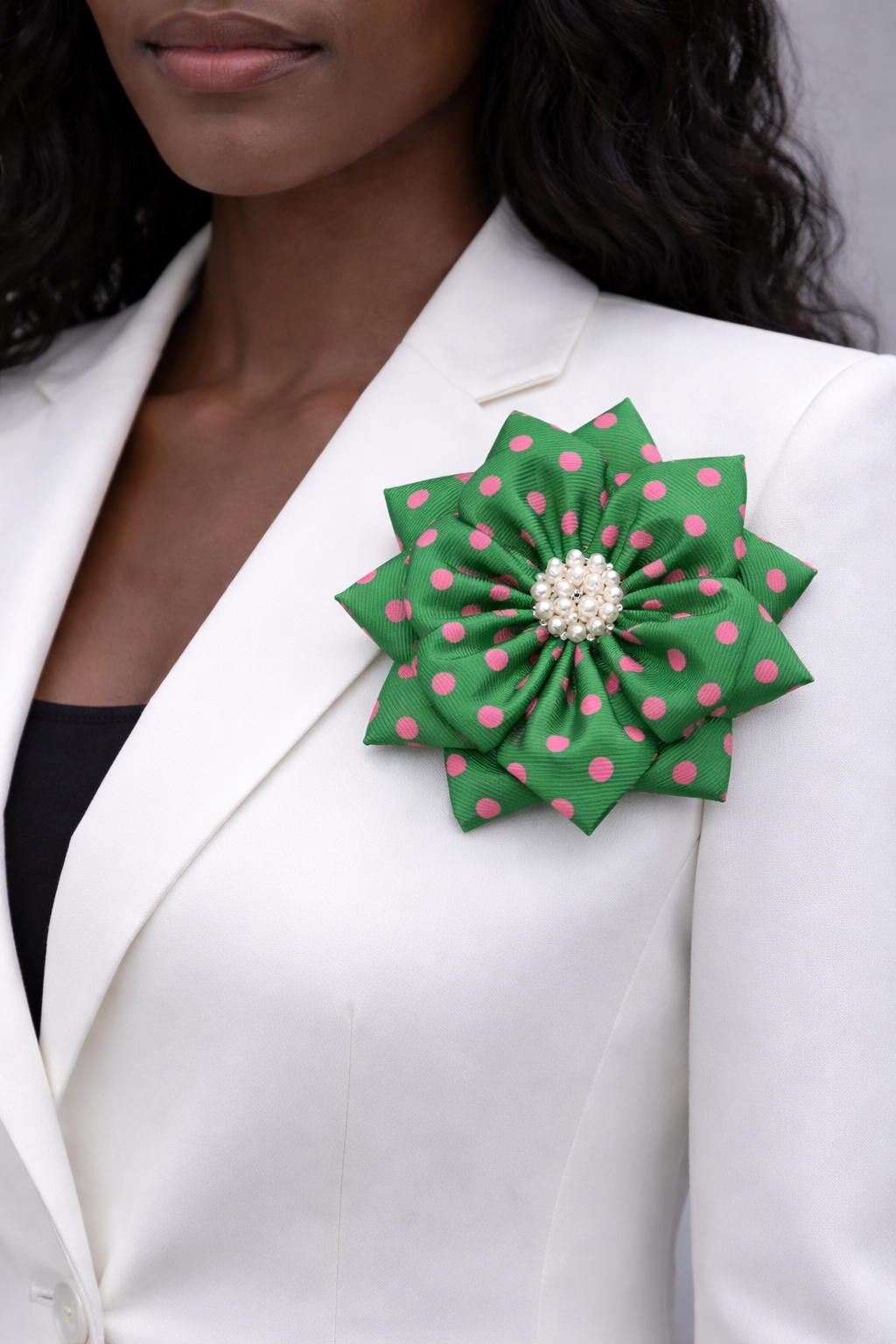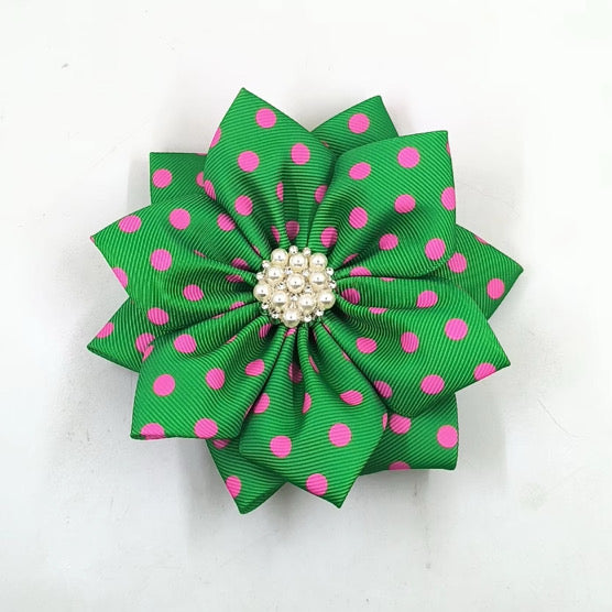 BROOCH, POLKA DOT PINK AND GREEN (4.5")