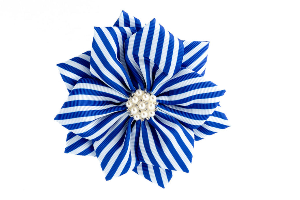 BROOCH, STRIPED BLUE AND WHITE (4.5")