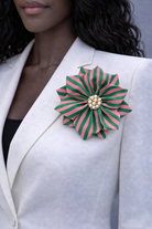 BROOCH, STRIPED PINK AND GREEN (4.5")