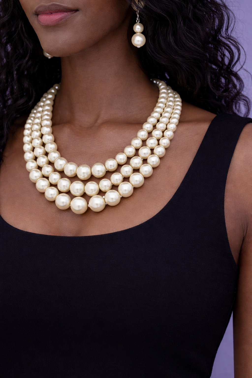 THREE STRAND PEARLS AND EARRINGS