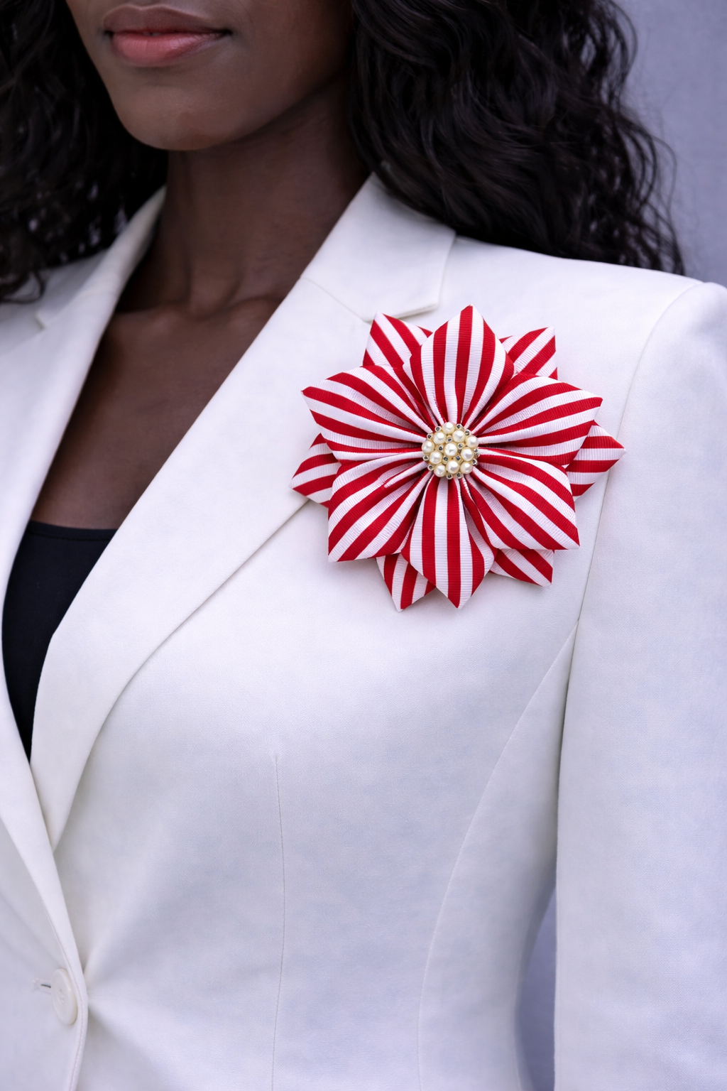 BROOCH, STRIPED RED AND WHITE (4.5")