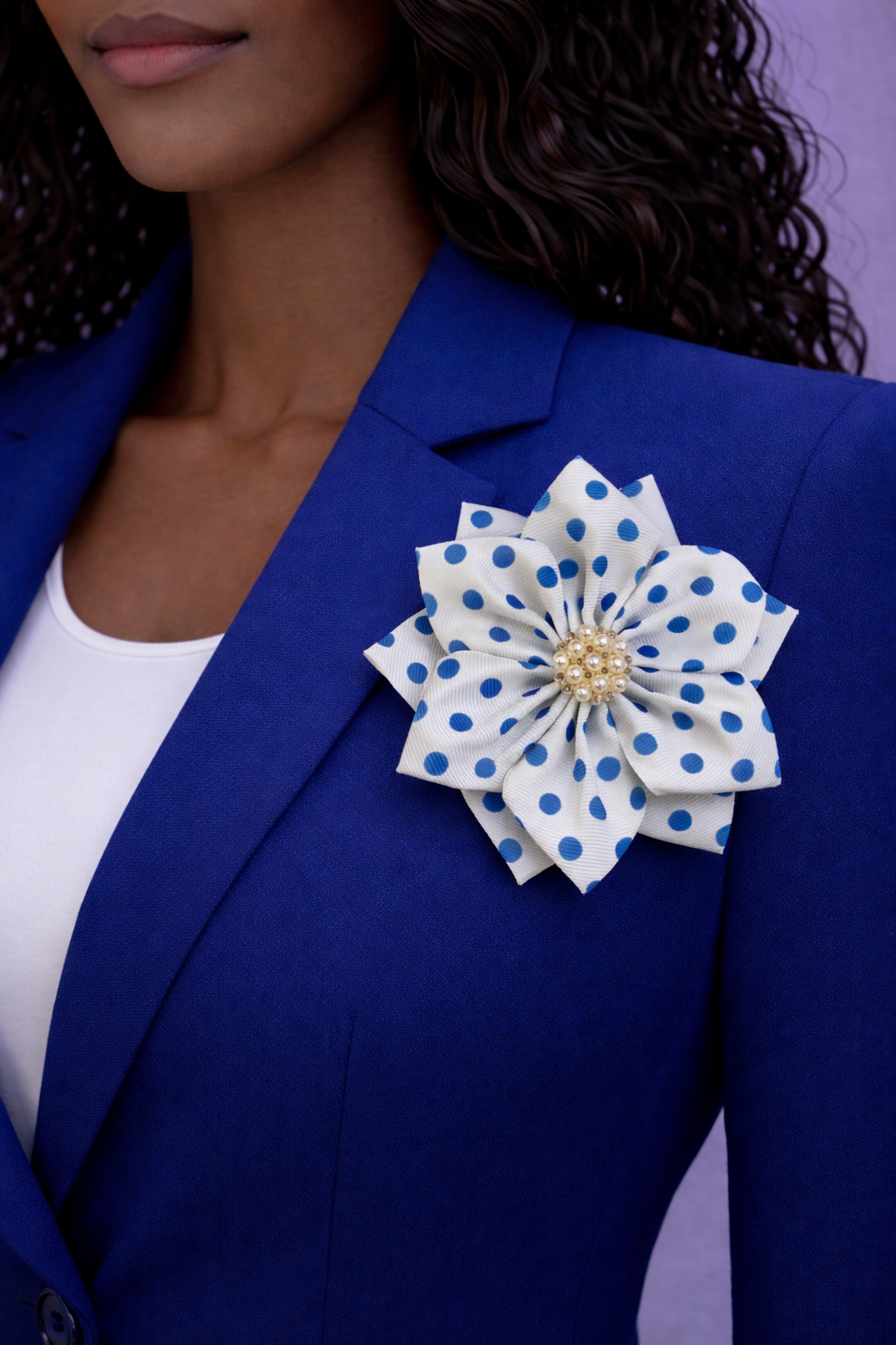 BROOCH, POLKA DOT WHITE AND BLUE (4.5")